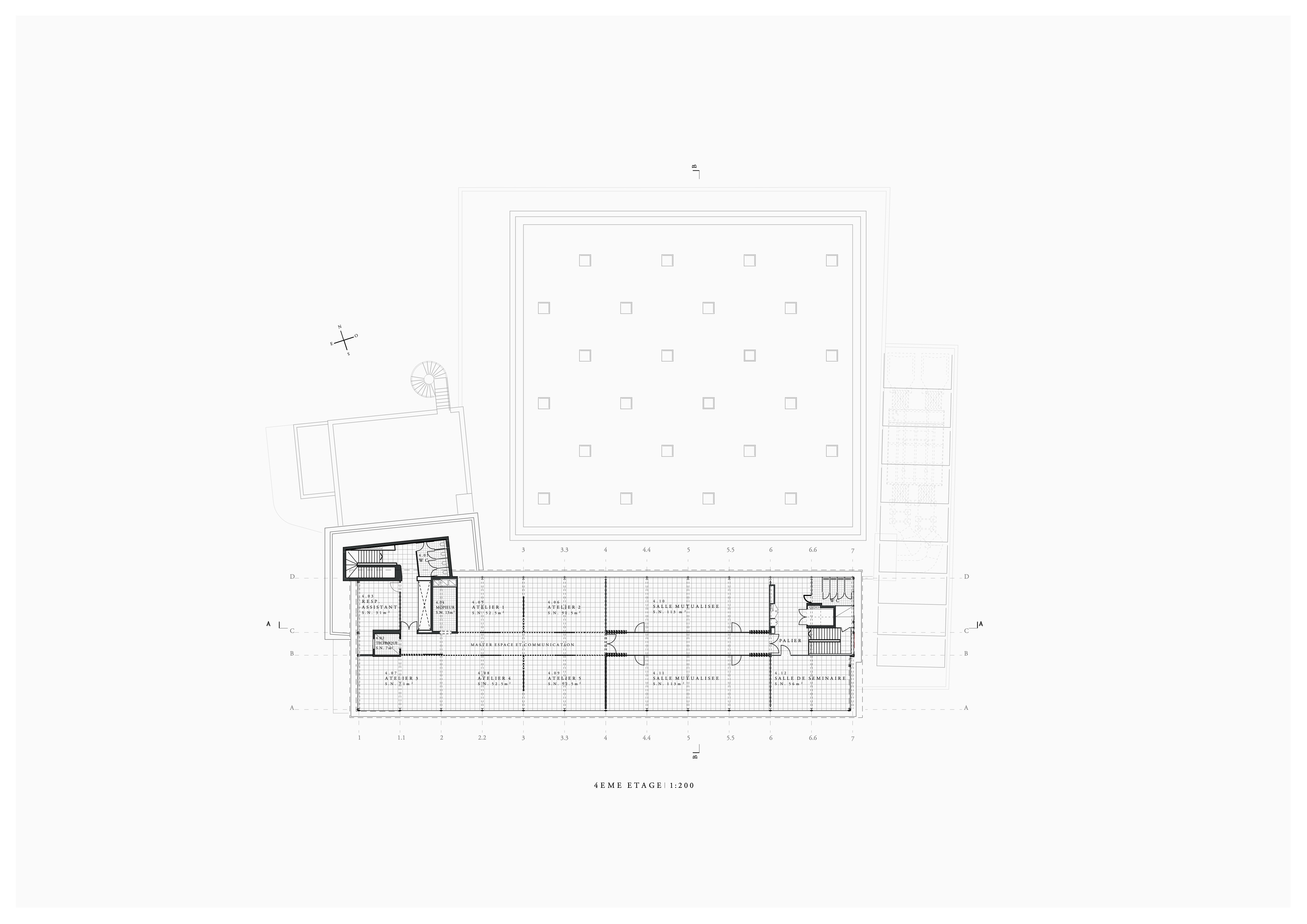 Une camera obscura est installée sur la toiture d’une école. Les rayons incidents qui y entrent se mélangent et se combinent en une synthèse additive. Apparait alors une image de la réalité, une représentation du présent qui saura figer pour l’avenir un moment alors déjà dans le passé. La chambre noire représente et communique un lieu de fabrication. Elle est une toile de fond, un outil de travail pour porter à la lumière les prochaines idées et objets contemporains.
